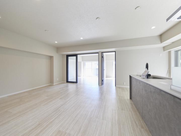 ・約16畳のLDKに可動式の扉を開けることで約22畳のLDKとなります。