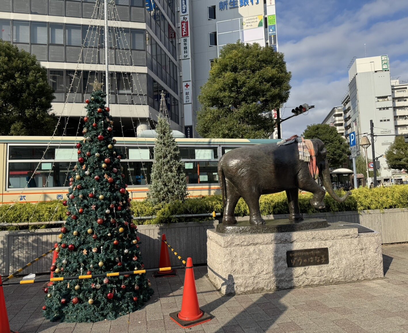 吉祥寺駅北口駅前広場にあるゾウのはな子に、今年も素敵なマフラーがかけられました。