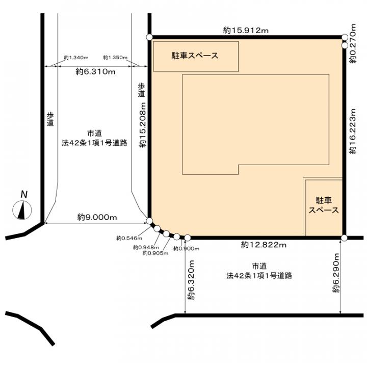 - 角地(南 6.3m 公道 間口12.9m)(西 9m 公道 間口15.2m)