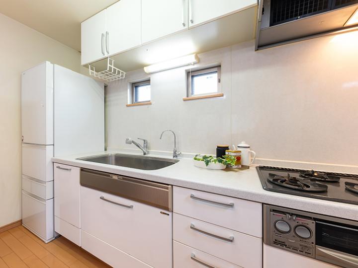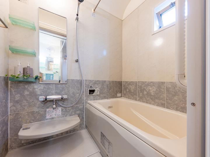 - 公営水道、都市ガス、公共下水、ガスコンロ、バルコニー有、追い焚き、システムキッチン、2階以上、モニタ付インターホン