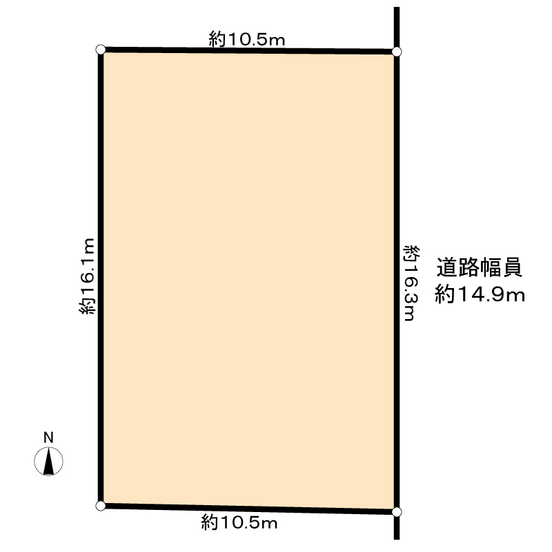 - 一方(東 14.9m 公道 間口16.3m)
