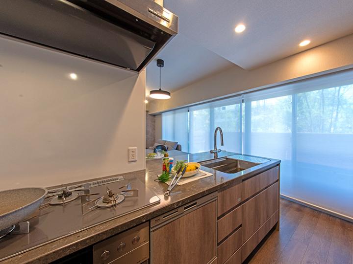 ・エコカラット(玄関)・アクセントクロス(リビング)・キッチンボード設置・UVカットガラス(リビング)・フローリングコーティング