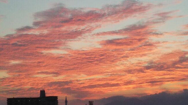 写真は、今朝撮影しました、幻想的な朝焼けでした。